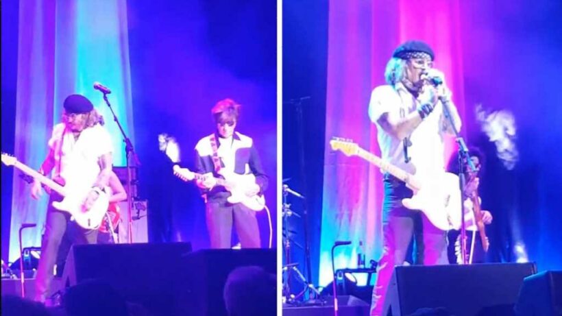 Johnny hit the stage with Jeff Beck in Sheffield England Sunday. Beck’s touring the UK and Johnny made a surprise appearance, and the crowd went wild.