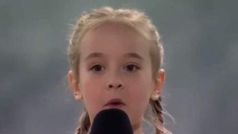 7-year-old Amelia Anisovych performed “Shche ne vmerla Ukrainy” Sunday night at the Atlas Arena in Poland, where they were holding a charity concert to further Ukrainian aid there.