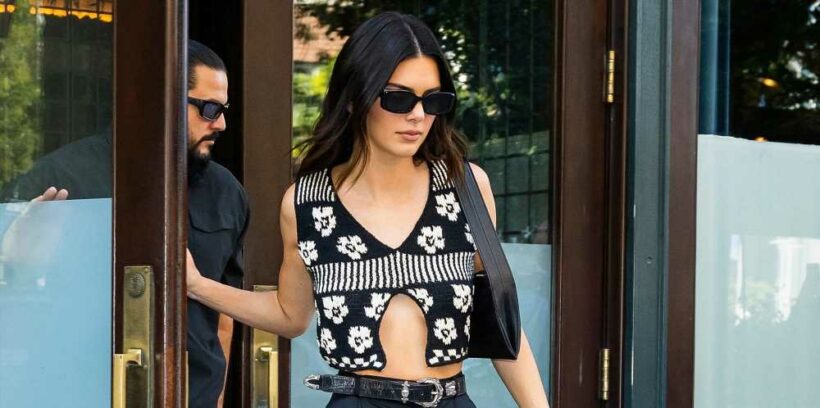 All-black outfits may require little thought to put together, but if you're hoping to liven up your look, work in a few earth tones, like Kendall Jenner. A gray T-shirt and mossy green heels subtly popped against her black shacket and trousers, allowing her look stand out in the crowd — literally!