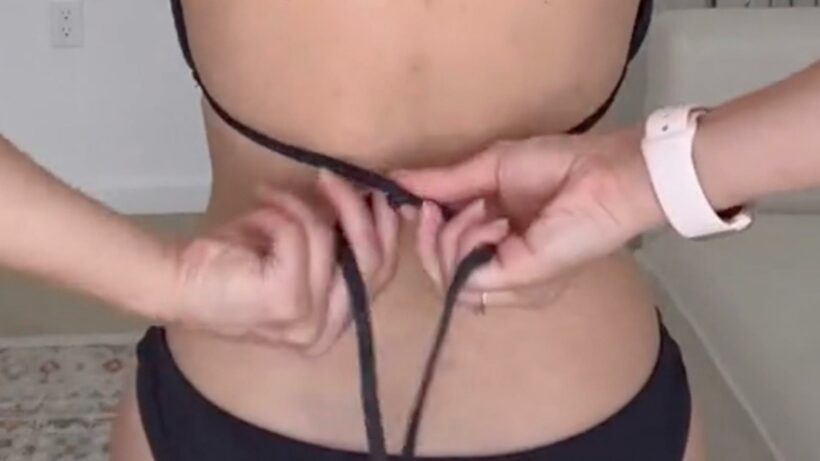 Jennifer Warnes, who reviews swimsuits and bras on TikTok, shared in a video how to tie your string bikini top to have shoulder straps rather than a halter neck.