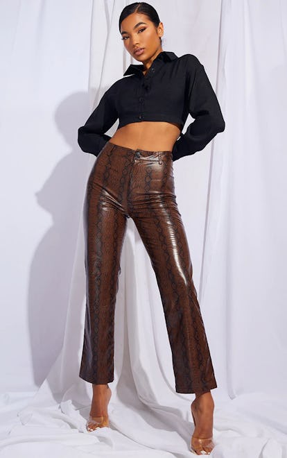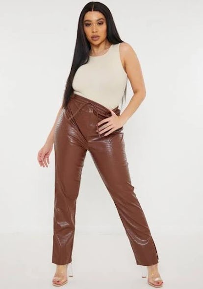 Brown leather pants are a staple in Kim Kardashian’s wardrobe, so that means, sooner or later, they’ll be a staple in yours as well. Sleek, brown leather pants are a versatile base for any outfits you want to try — they pair amazingly with any kind of shirt, from a bra top to an oversized button-down, and the play on light adds dimension that a dark color like brown can lack.