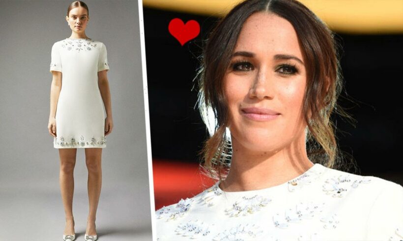 Still in love with Meghan’s designer dress? Us too, and thanks to Coast you can shop a near-identical version for a more affordable price. Reduced to £183.20 in the sale, this eye-catching mini dress is adorned with elegant crystal embellishments that shimmer in the light. Cut in a similar shift style, it makes for a flattering yet relaxed fit.
