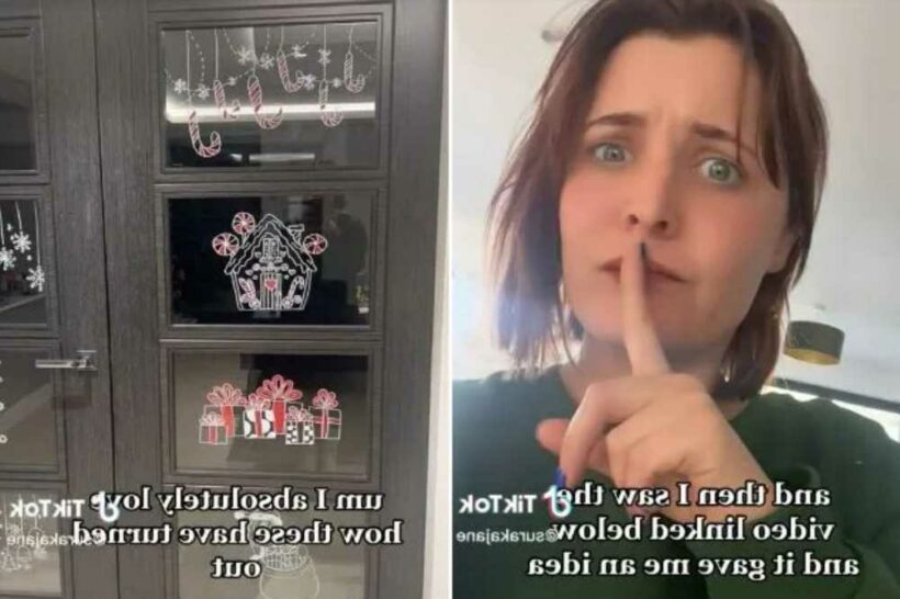 During the 35-second video, the thrifty mum was seen tracing over some festive designs she’d taped to one side of her glass doors with chalk pens.