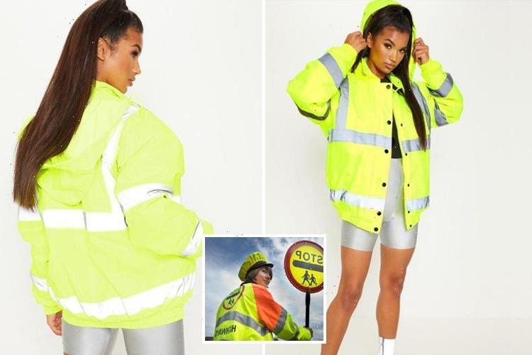 PrettyLittleThing says the the stand-out item has 'florescent yellow high vis material with reflective panels, hood and oversized fit'.