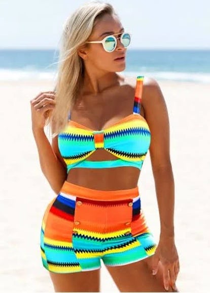 Although neutrals and monochromatic outfits are reigning supreme these days, summer is all about color, so Curvy Sense’s Color Block Bikini Set ($48, Curvy Sense) is a must.