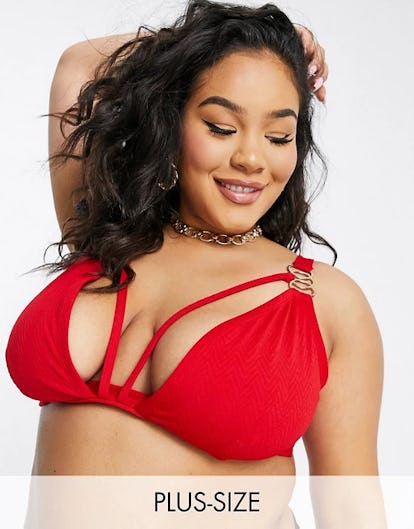 The triangle bikini is a classic that will never go out of style, and Wolf and Whistle’s Ribbed Bikini Set ($64, ASOS) comes in Baywatch-red that’ll guarantee you tons of fire emojis on your Instagrams. The gold shoulder detail and strappy design give off major luxe, sexy vibes, while the ribbed material is incredibly comfortable to wear all day.