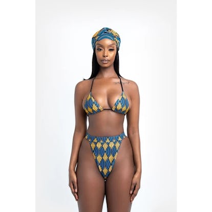 For a bold and vibrant pattern, look no further than Ofuure’s OLUCHI top ($26, Ofuure) and FUNMI bottoms ($26, Ofuure). The underwire look will keep you supported, and the high-waisted, ’90s bottoms are a fun way to bring a new-old silhouette into your rotation.
