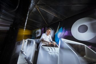 Street artist Mysterious in the Spookhouse.Credit:Chris Hopkins