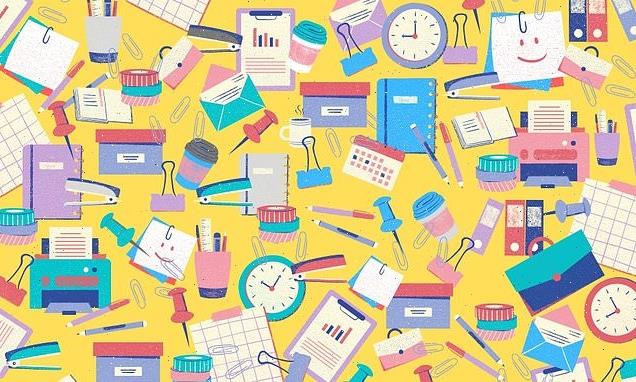 There are clocks, staplers and notebooks… but can you find the only coffee cup?