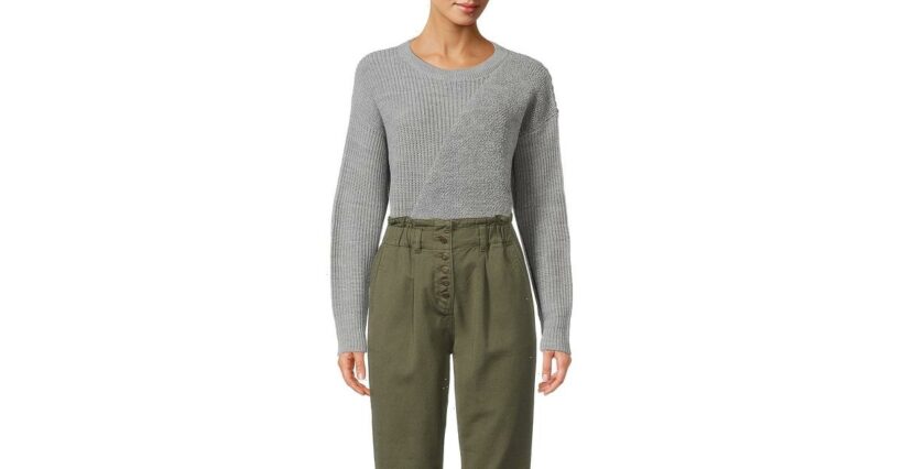 This sweater is a Walmart exclusive, meaning you won’t find a better deal anywhere else — if that were even really possible. With its unique design, we truly expected a higher price point. While many sweaters out there play with color-blocking or even pattern-blocking, this sweater actually presents a form of knit-blocking. It features asymmetrical intarsia knit detailing in the front and back of the torso to contrast the regular knit!