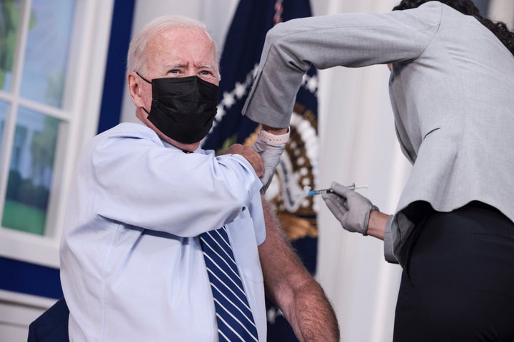 “I know it doesn’t look like it, but I am over 65,” Biden, who’s 78, joked just before receiving the shot in his left arm.
