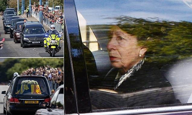 - Anne’s royal car followed a hearse carrying the Queen’s oak coffin, which was draped in the Royal Standard for Scotland