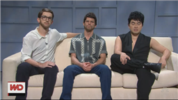 Bowen Yang, Mikey Day and Andrew Dismukes played the three Try Guys Eugene Lee Yang, Zach Kornfeld and Keith Habersberger, appearing on CNN in a video formation identical to the one seen in their initial video addressing Fulmer’s exit from the video series, which is produced by a company founded by all four initial members. While Gleeson’s reporter is starstruck to speak with the three, an increasingly confused Nwodim tries desperately to understand why the story matters, asking if the affair was non-consensual.