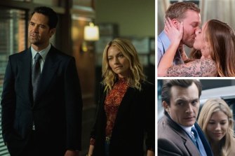 Clockwise from main: Manuel Garcia-Rulfo and Becki Newton in The Lincoln Lawyer, The Ultimatum: Marry or Move On and Rupert Friend and Sienna Miller in The Lincoln Lawyer.Credit:Lara Solanki, Jody Domingue, Netflix
