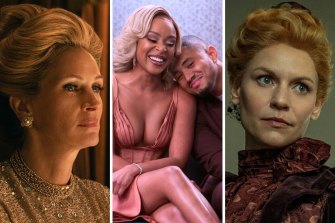 Top streaming in March (from left): Julia Roberts in Gaslit, Netflix’s The UItimatum: Marry or Move On and Claire Danes in The Essex Serpent.Credit:Hilary Bronwyn Gayle/Starz, Adam Rose/Netflix, Apple TV+