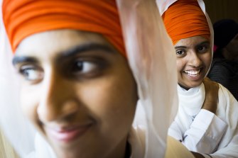 Sisters Paramjot and Harjot Kaur on Saturday.Credit:Chris Hopkins
