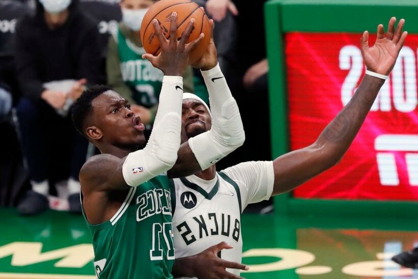 With reigning finals MVP Antetokounmpo ruled out 90 minutes before the match with an ankle sprain, the Celtics led narrowly at three-quarter time before a Bucks’ fightback sent the match into overtime, where Boston went on a 14-5 run to seal the home victory.