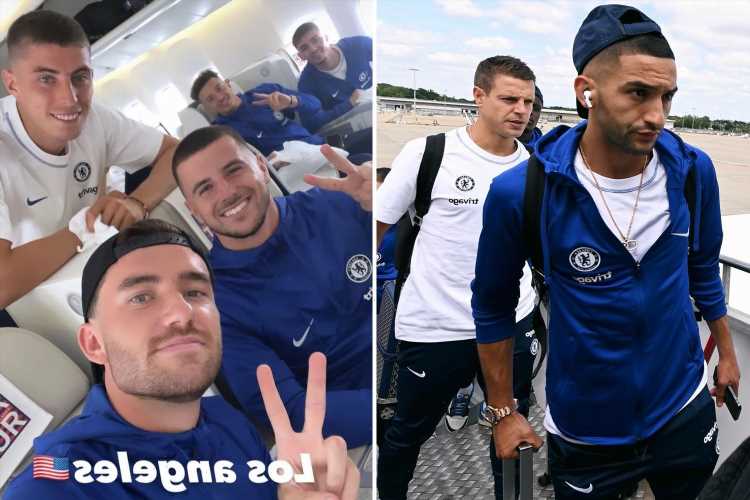 The Blues squad were pictured boarding a plane to Los Angeles where they will undergo part of their pre-season preparations.