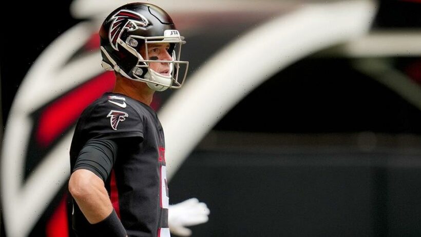 Matt Ryan before the Falcons’ game against the Carolina Panthers at Mercedes-Benz Stadium on Oct. 31, 2021, in Atlanta, Georgia.
