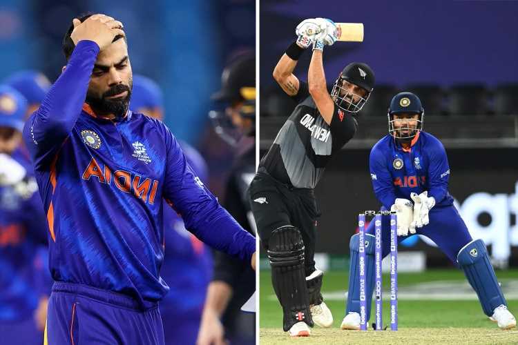 Virat Kohli’s team – the pre-tournament favourites – were hammered by eight wickets by New Zealand and must now rely on other results going their way.