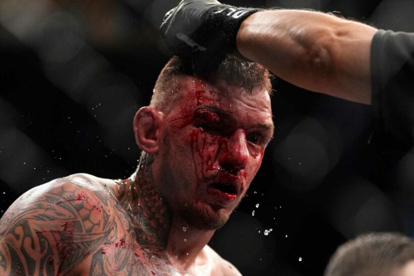 Short-notice replacement Moicano was beaten to a bloody pulp in his unanimous decision defeat to the former 155lb champ.