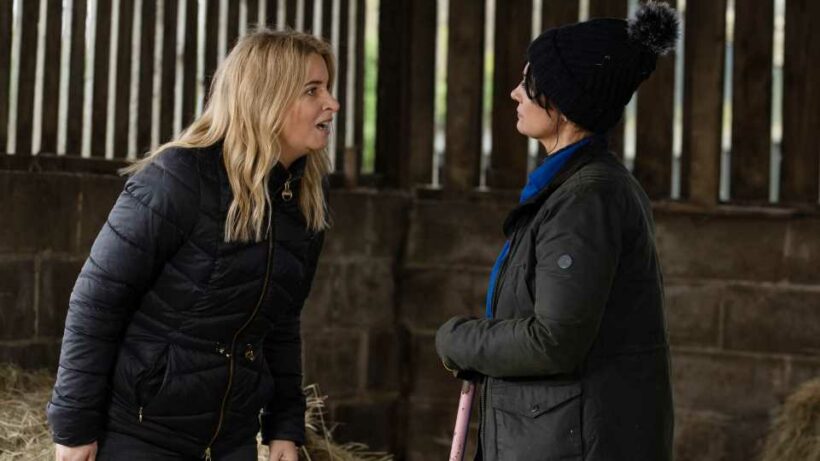 The pair of them get into a physical altercation in the barn, ending up covered in hay as a result… and losing both wedding rings.