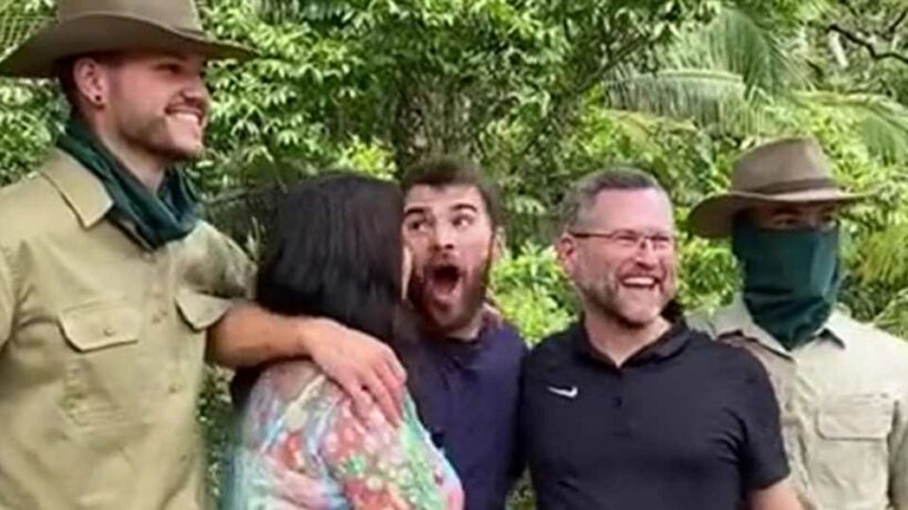 I'M A Celeb star Owen Warner was jumping for joy last night when two jungle rangers wearing masks turned out to be his brothers in disguise.