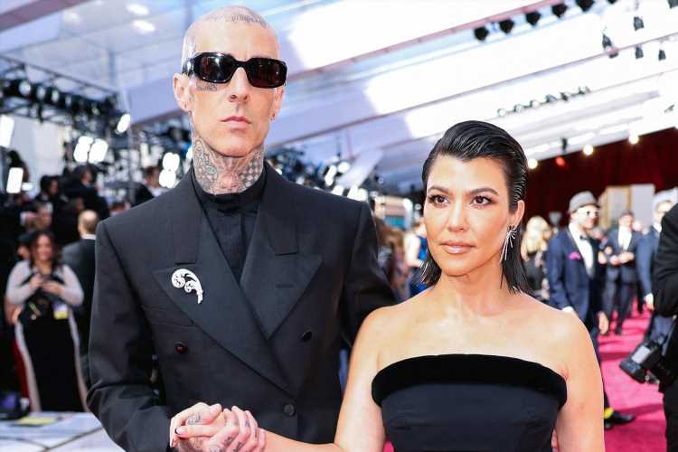 Kourtney and Travis, 46, turned heads on the red carpet, with the model sporting a strapless black dress, while her drummer fiance opted for an all-black suit.