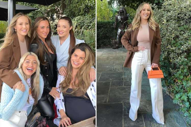 Former Towie star Kate then posed with a group of ladies by one of the outdoor tables writing: "Love you girls 🤎."