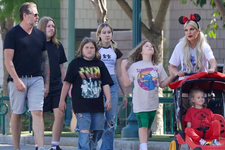 TORI Spelling looked furious with husband Dean MerDermott and their five kids at Disneyland.