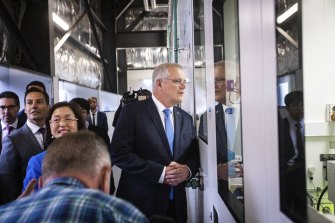 Prime Minister Scott Morrison touring Monash University on Thursday morning. Credit:Paul Jeffers