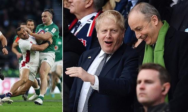Boris Johnson enjoyed a brilliant game of rugby with Irish Taoiseach Micheal Martin (left) as England lost to Ireland today