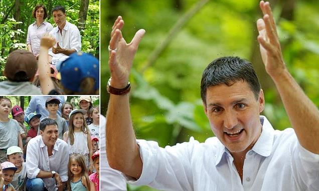 Mr Trudeau was pictured visiting children at a day camp in Gatineau Park in Quebec with much shorter hair than usual