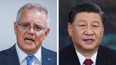 Neither Australia’s Prime Minister Scott Morrison nor China’s President Xi Jinping are in a mood to back down.Credit:Joe Armao/AP