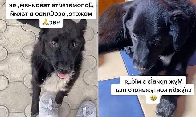‘It’s hard to look at him, to the point that it brings tears to my eyes,’ she wrote as she shared footage of the dog shaking uncontrollably. ‘I wanted to help him. As a result of the strong bomb blast, he twitched, swayed and was breathing hard.’