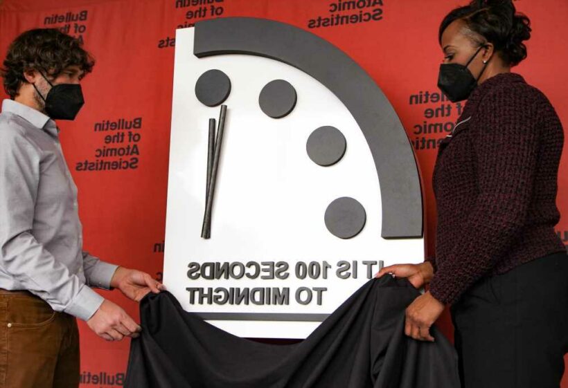 The Doomsday Clock countdown – which acts as a metaphor for global apocalypse – takes into account the likelihood of emerging threats like war breaking out and the impact of Covid as well as advances in biotechnology and artificial intelligence.
