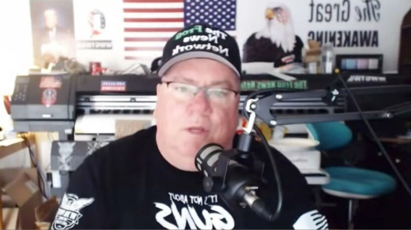He showed support for QAnon, with posters seen in the background of his studio that had well-known phrases attached to the group.