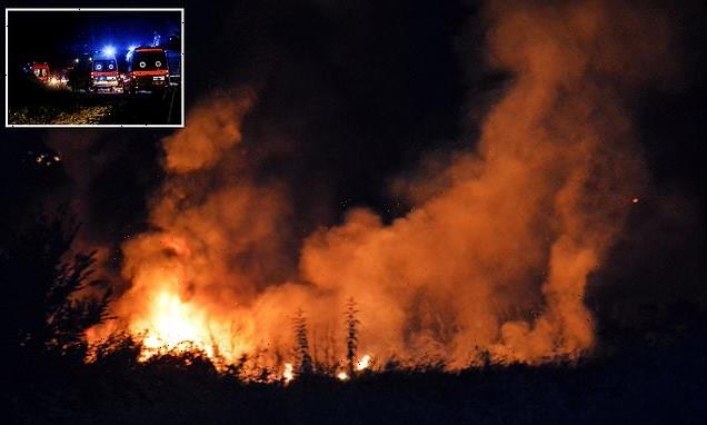‘We were hearing explosions until a few minutes ago,’ Filippos Anastassiadis, mayor of the municipality of Paggaio, told the Associated Press. ‘I am about 300 meters from the site of the crash.’