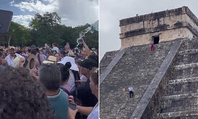 The unnamed woman could be seen near the top of El Castillo – or Pyramid of Kukulcán – in the Mexican state of Yucatán dancing while an enraged crowd shouted abuse at her from down below.