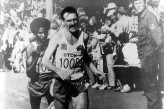 Robert de Castella on his way to winning the marathon at the world championships.Credit:AP