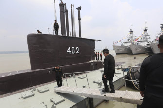 An oil spill was found near the site where the KRI Nanggala-402 submarine, pictured in 2014, was last located.Credit:AP
