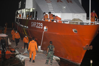 An Indonesian search and rescue crew launches from Benoa harbor in Bali. Credit:AP