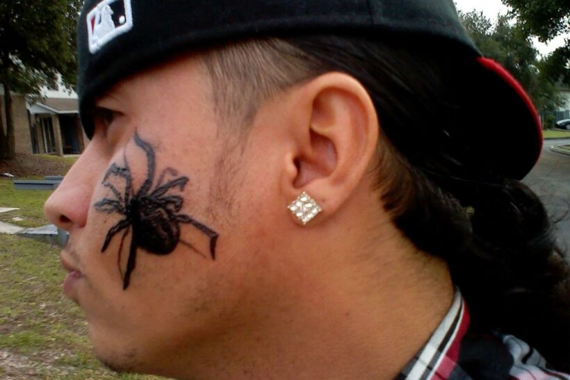 Eric Ortiz said that “everybody” is afraid of spiders, which is what inspired him to get the creature permanently drawn on his cheek.