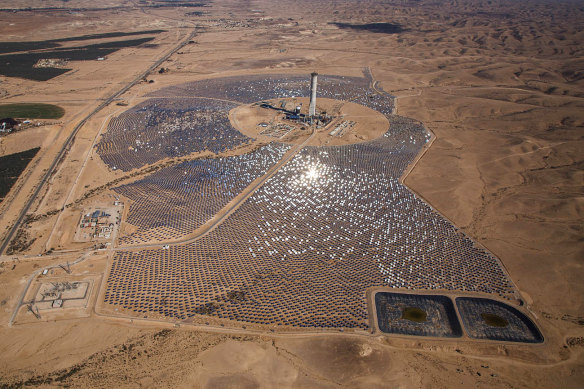 A solar farm and power plant in Negev desert near the kibbutz of Ashalim in Israel.