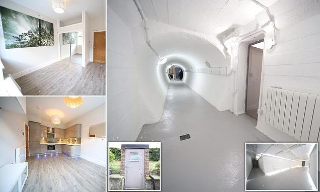The listing description says: ‘Unique Estates are pleased to offer this exceptional and unique two-bed apartment with its own garden and a large underground bunker.