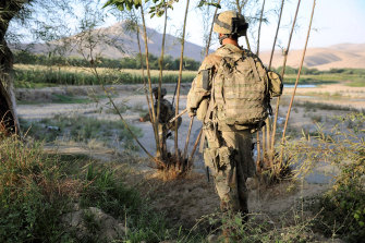 Australian soldiers patrolling the Khod Valley in southern Afghanistan. Credit:ADF