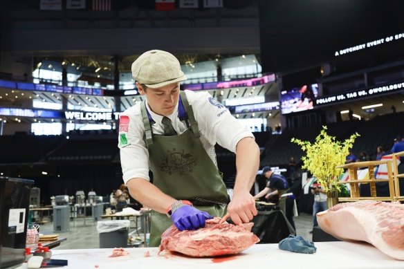But this month, 23-year-old Matt Tyquin was under bright lights and on panoramic screens slicing through rump and loin in a Californian stadium, usually the domain of Sacramento NBA games and pop music superstars, at what’s dubbed the “Olympics for meat”.