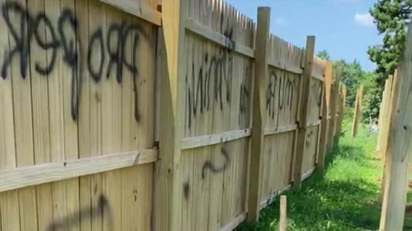 The woman, from Virginia in the US, took to TikTok to share the crude words spray painted in black on the fence on the border of her land.