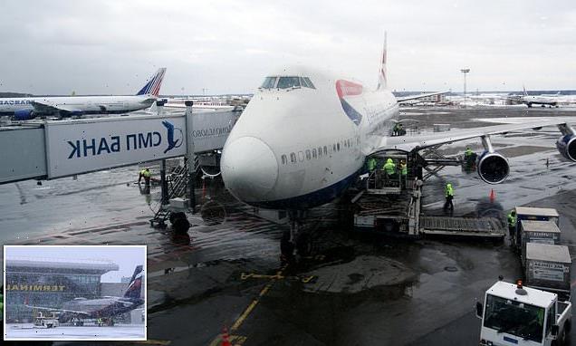 Russia’s aviation authority said today: ‘A restriction was introduced on the use of Russian airspace for flights of aircrafts owned, leased or operated by an organisation linked to or registered in the UK.’