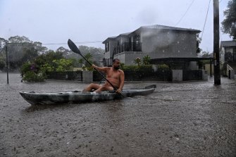 Homes and streets flood in Lansvale, in Sydney’s south-west, as the Georges River rises.Credit:Nick Moir